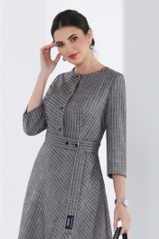 Платье с округлым вырезом горловины, фигурным низом и съёмным поясом по талии. Перед с центральной застёжкой на петли и пуговицы до талии и фигурными подрезами в нижней части. Спинка отрезная по талии, фигурными подрезами в нижней части, средним швом до талии и талиевыми вытачками. Платье с потайной молнией в боковом шве. ВОЗМОЖНА ЗАМЕНА ФУРНИТУРЫ НА АНАЛОГИЧНУЮ ТАКОГО ЖЕ КАЧЕСТВА.