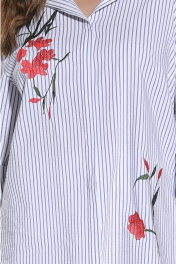 Костюм брючный. Комплектация: Блузка, брюки, пояс. Блузка рубашечного покроя свободной формы с дизайнерской вышивкой и широкими манжетами дополнена съемным поясом. Перед с центральной потайной застежкой на петли и пуговицы украшен авторской вышивкой с цветочным мотивом. Спинка цельная. Линия плеча немного приспущена (рубашечный покрой). Рукав с отворотом. Брюки средней посадки отрезным поясом. Перед пояса с застежкой на пуговицу и гульфик с молнией от карманов и по спинке пояс на резинке . ВОЗМОЖНА ЗАМЕНА ФУРНИТУРЫ НА АНАЛОГИЧНУЮ ТАКОГО ЖЕ КАЧЕСТВА.