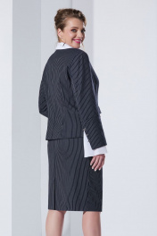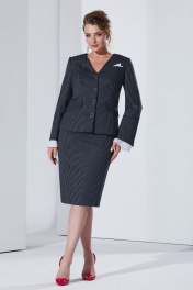 Стильный офисный костюм-транформер состоит из жакета со съемными элементами и юбки. Жакет полуприлегающего силуэта с V-образным вырезом со съемными элементами: воротник ,манжеты в рукавах и нагрудный платок отстегиваются. Перед ,с центральной застежкой на петли и пуговицы, оформлен вертикальными полурельефами до входа в карман (карманы с листочкой и клапаном функциональные нагрудный карман-обманка со съемным элементом). Спинка со средним швом и талиевыми вытачками. Рукава втачные с подрезом ниже локтя застегиваются на пришитые декоративные крючки. Юбка карандаш с отрезным поясом , застежка на потайную молнию в среднем шве спинки, по низу юбки шлица. ЖАКЕТ И ЮБКА НА ПОДКЛАДКЕ.