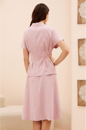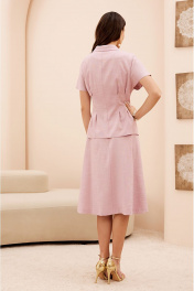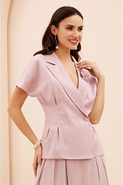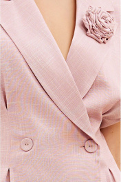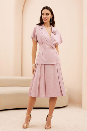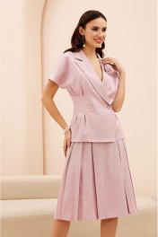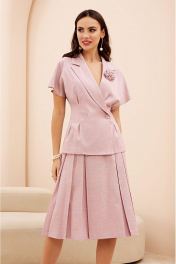 Комплектация: Жакет, юбка, брошь. Дизайнерский костюм с авторским кроем, состоит из двубортного жакета на основе кимоно с пиджачным воротником и юбкой трапецией со складками дополнен съемной брошью, по достоинству оценят любители выделяться своим утонченным чувством вкуса и стиля. Данный комплект вдохновленный ранним Dior и «Haute couture» отлично подойдет для особых случаев и офисных будней. Двубортный жакет полуприлегающего силуэта с дизайнерским кроем (на основе кимоно) и воротником пиджачного типа, дополнен съемной брошью ручной работы . Брошь выполнена из основной ткани в поддержку итальянских пуговиц (обтянутых тканью). Перед и спинка оформлены декоративными складками. Рукав на основе цельнокроеного покроя. Юбка трапеция средней посадки с отрезным поясом. Перед со встречными складками, спинка со средним и застежкой на потайную молнию. (Юбка на х/б подкладке)