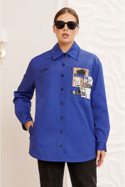 Синяя рубашка-овершорт с декором и карманами Lissana 4761 синий