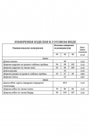 Костюм юбочный Жакет со стояче-отложным воротником пиджачного типа и двубортной застёжкой на петли и пуговицы. Изделие с фигурным низом по переду. Перед с накладными карманами в верхней части. Спинка со средним швом и двумя рельефами. Рукава втачные. Юбка на притачном поясе и потайной молнией в боковом шве. Переднее полотнище с накладными карманами. Заднее полотнище с отлетной деталью. Юбка на подкладке.
