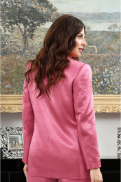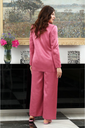 Нарядный костюм с пиджачным воротником и обтянутыми пуговицами отличный выбор для современной женщины. Удлиненный жакет полуприлегающего силуэта с закругленными бортами и функциональными карманами в рамочку с листочкой . Перед оформлен бочком и выточкой. Спинка со средним швом и бочком. Рукава втачные с верхней и нижней частью. Жакет на подкладке. Базовые брюки прямого кроя с косыми карманами и отрезным поясом , по бокам на резинке. Застежка обработана по классической технологии (гульфик с молнией и пуговица на поясе). обработка выполнена как в классических итальянских костюмах. ВОЗМОЖНА ЗАМЕНА ФУРНИТУРЫ НА АНАЛОГИЧНУЮ ТАКОГО ЖЕ КАЧЕСТВА.