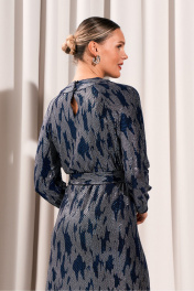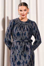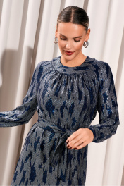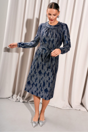 Платье с отрезной деталью по горловине и сборкой от неё по переду. Спинка с застёжкой на петлю с пуговицей в верхней части. Рукава покроя реглан с манжетами в нижней части. По талии съёмный пояс из основной ткани. ВОЗМОЖНА ЗАМЕНА ФУРНИТУРЫ НА АНАЛОГИЧНУЮ ТАКОГО ЖЕ КАЧЕСТВА.