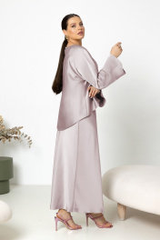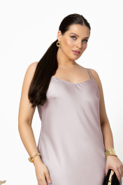 Блуза с округлым вырезом горловины, фигурным низом и цельнокроеными рукавами. Спинка с застёжкой на петлю с пуговицей от горловины. Платье с фигурным вырезом горловины и на бретелях (бретели регулируемые).