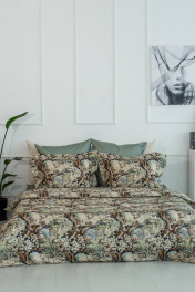 Коллекция постельного белья ДАФНА создаст мифическую атмосферу и наполнит спальную комнату эпохой барокко. Контрастность цвета, обостренная чувственность, совмещение реальности и иллюзии. Выразительность рисунка ткани для пододеяльника и наволочек дополняет ткань-дует для простыни с текстурным принтом цвета зеленого шалфея. Полутороспальный пододеяльник 150х215см - 1 шт. простыня 160х215 см - 1 шт. наволочка 50х70 см - 2 шт. Коробка дизайнерская подарочная фирменная 31х40х10 см