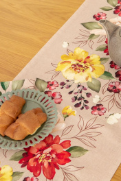 Дорожки коллекции «Вернисаж» имеют специальную пропитку (влаго-, масло- и грязеотталкивающую обработку). Принт на ткани нанесен методом цифровой печати с использованием высококачественных красителей, благодаря чему изделия не линяют и не меняют свой цвет после многократных стирок. Рисунок по ткани виден только на лицевой стороне. ЭКСКЛЮЗИВНЫЙ ДИЗАЙН: Коллекция «ВЕРНИСАЖ» - это настоящая осенняя палитра, где много оттенков из теплой части цветового круга (красных, желтых, коричневых, зеленых, золотых). Дорожка на стол "Вернисаж" размером 40х140см. Дорожка может расстилаться как поверх скатерти, так и отдельно, чтобы подчеркнуть фактурную поверхность стола; как вдоль стола, так и поперёк, создавая эффект "диалога" между людьми, сидящими друг напротив друга. Упаковка товара: Полипропиленовый пакет