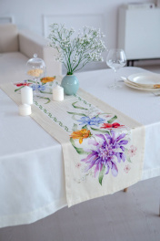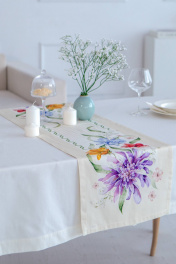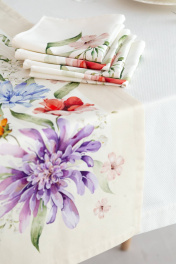 Дорожки коллекции «ЖАКЛИН» имеют специальную пропитку (влаго-, масло- и грязеотталкивающую обработку). Принт на ткани нанесен методом цифровой печати с использованием высококачественных красителей, благодаря чему изделия не линяют и не меняют свой цвет после многократных стирок. Рисунок по ткани виден только на лицевой стороне. Дорожка на стол "ЖАКЛИН" размером 40х145см. Дорожка может расстилаться как поверх скатерти, так и отдельно, чтобы подчеркнуть фактурную поверхность стола; как вдоль стола, так и поперёк, создавая эффект "диалога" между людьми, сидящими друг напротив друга. Упаковка товара: Полипропиленовый пакет