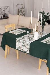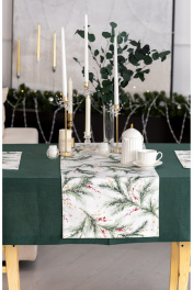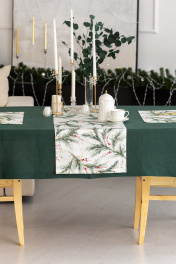 Дорожка на стол "Ветви рождества на белом", 100% хлопок