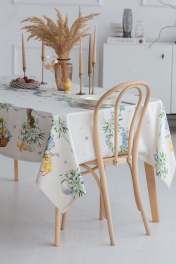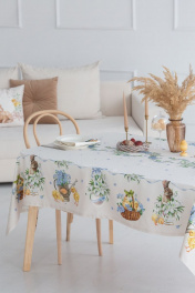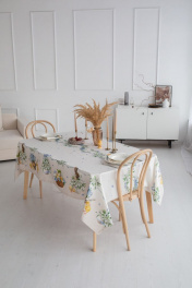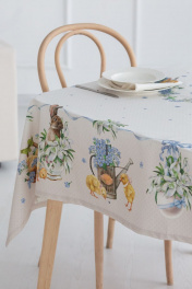 Все скатерти коллекции «РЕТРО» имеют специальную пропитку (влаго-, масло- и грязеотталкивающую обработку). Принт на ткани нанесен методом цифровой печати с использованием высококачественных красителей, благодаря чему изделия не линяют и не меняют свой цвет после многократных стирок. Рисунок по ткани виден только на лицевой стороне. ЭКСКЛЮЗИВНЫЙ ДИЗАЙН: Интересной тенденцией в текстиле стал стиль ретро. И именно в этом стиле была создана новая весенняя коллекция от Listelle collection – это коллекция "РЕТРО". Незабудки, подснежники и цыплята с корзинками – всё прорисовано в стиле ретро. Гармоничное сочетание милых зарисовок на скатертях, дорожках, салфетках навевает теплый нежный дух весны. Скатерть коллекции «РЕТРО» размером 145х225см прямоугольная. Углы скатерти обработаны как «евроугол». Скатерть белая, на нежно-бежевым узоре прорисованы подснежники, цыплята и незабудки. Скатерть 145х225см подходит для прямоугольного стола шириной 70…80…90…100см и длиной 150...160...170...180см. Коробка с окошком; 38х30х4 см