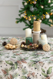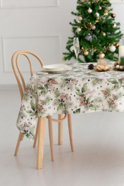 Все скатерти коллекции «ХВОЙНЫЙ ЭТЮД» имеют специальную пропитку (влаго-, масло- и грязеотталкивающую обработку). Принт на ткани нанесен методом цифровой печати с использованием высококачественных красителей, благодаря чему изделия не линяют и не меняют свой цвет после многократных стирок. Рисунок по ткани виден только на лицевой стороне. ЭКСКЛЮЗИВНЫЙ ДИЗАЙН: Скатерть коллекции «ХВОЙНЫЙ ЭТЮД» размером 110х145см прямоугольная. Углы скатерти обработаны как «евроугол». Скатерть прямоугольная 110х145см подходит для прямоугольного стола шириной 50...60...70см и длиной 70…80…90…100см. Дорожка бежевая с хвойными веточками, шишками и карандашом нарисованными подарками. Упаковка товара: Полипропиленовый пакет