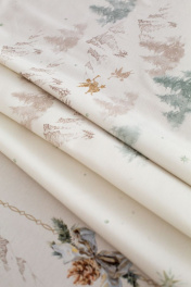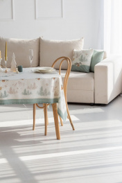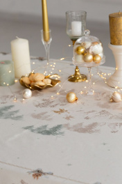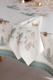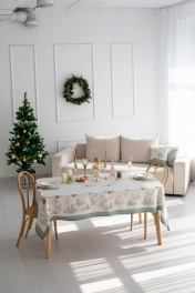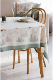 Все скатерти коллекции «СНЕЖНЫЙ АНГЕЛ» имеют специальную пропитку (влаго-, масло- и грязеотталкивающую обработку). Принт на ткани нанесен методом цифровой печати с использованием высококачественных красителей, благодаря чему изделия не линяют и не меняют свой цвет после многократных стирок. Рисунок по ткани виден только на лицевой стороне. ЭКСКЛЮЗИВНЫЙ ДИЗАЙН: Скатерть коллекции «СНЕЖНЫЙ АНГЕЛ» размером 145х145см квадратная. Углы скатерти обработаны как «евроугол». Скатерть квадратная 145х145см подходит для квадратного стола шириной 70…80…90…100см и длиной 70…80…90…100см. Скатерть белая с морозно-зеленой каймой по краю скатерти, акварельными и карандашными елями, скатерть дополняют золотистые ангелы. Упаковка товара: Полипропиленовый пакет