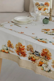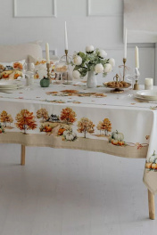 Все скатерти и дорожки коллекции «ТЕРРА» выполнены из ткани для столового белья плотностью 190г/кв.м и имеют специальную пропитку (влаго-, масло- и грязеотталкивающую обработку). Принт на ткани нанесен методом цифровой печати с использованием высококачественных красителей, благодаря чему изделия не линяют и не меняют свой цвет после многократных стирок. Рисунок по ткани виден только на лицевой стороне.