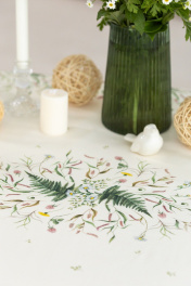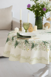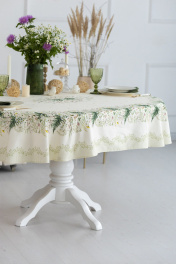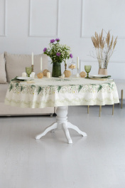 Скатерть 150х200см подходит для овального стола шириной 70…80…90…100см и длиной 130…140…150см. СВОЙСТВА ТКАНИ (состав, плотность, пропитка): Состав ткани 100% хлопок. Все скатерти и дорожки коллекции «КУПАЛИНКА» выполнены из ткани для столового белья плотностью 190г/кв.м и имеют специальную пропитку (влаго-, масло- и грязеотталкивающую обработку). Принт на ткани нанесен методом цифровой печати с использованием высококачественных красителей, благодаря чему изделия не линяют и не меняют свой цвет после многократных стирок. Рисунок по ткани виден только на лицевой стороне. ЭКСКЛЮЗИВНЫЙ ДИЗАЙН: УХОД ЗА ИЗДЕЛИЕМ: Изделия из натуральных тканей требуют особого ухода. Стирка при температуре 30 С; деликатный отжим (чтобы уменьшить смятость изделия), гладить изделия полувлажными при максимальной температуре, не отбеливать. Если при использовании изделий было нанесено пятно, рекомендуем испачканное изделие постирать не позднее следующего дня, т.к. натуральные нити ткани быстро впитывают натуральные красители еды и напитков (чай, кофе, соусы). При стирке изделий допускается использование пятновыводящих средств для цветного белья. После стирки возможна усадка изделия на 3-5%.