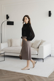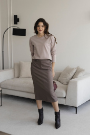 Юбка-карандаш миди с высокой посадкой из текстиля LIZET М1836 капучино
