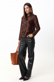 Коричневая блуза из струящейся ткани с завязками LM 1632 рыжий