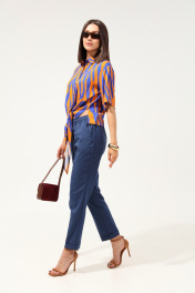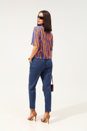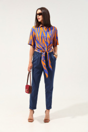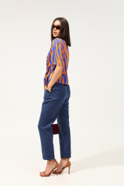 Удобные повседневные брюки из лёгкой ткани с вискозой в составе. Брюки свободного прилегания по бедрам и зауженные к низу. Пояс на эластичной тесьме с кулисой и втянутым шнурком. Вход в карман фигурный, наклонный к боковому шву.
