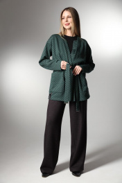 Комплект 2-ка, состоящий из кардигана и брюк. Удлиненный кардиган из мягкой ткани свободного силуэта. По переду расположены накладные карманы. В комплекте идёт пояс из основной ткани с металлическими наконечниками. Брюки широкого объема, прямого силуэта. В боковых швах расположены карманы с наклонным входом. Пояс брюк на эластичной тесьме. Фурнитура и материалы отделки могут незначительно отличаться от тех, что на фотографии Рост фотомодели 166 см. Размер у фотомодели – 42.