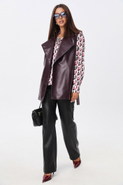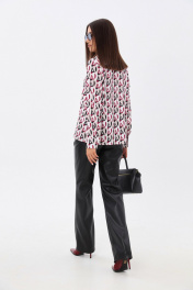 Комплект 3ка, состоящий из блузки жилета и брюк. Блузка прямого силуэта с оригинальным принтом из лёгкой ткани с атласным мягким блеском. Воротник рубашечного типа, застежка на прорезные петли и пуговицы. В нижней части рукава заложены складки, манжета на двух пуговицах. Удлинённый жилет из экокожи с поясом и широким отложным воротником с лацканами. По бокам расположены удобные карманы. Прямые брюки из мягкой экокожи с мягкой изнанкой, очень приятной к телу. По переду и сзади расположены карманы по принципу джинсовых брюк. Застёжка на молнию и пуговицу. Фурнитура и материалы отделки могут незначительно отличаться от тех, что на фотографии. Рост фотомодели 175 см. Размер у фотомодели – 44.