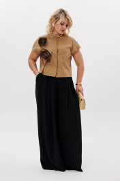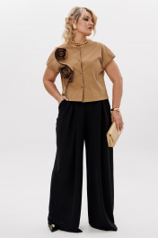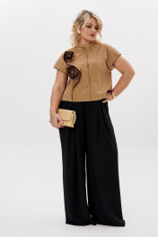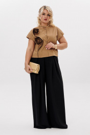 Комплект блуза с цветочным декором и брючный костюм LM К5020 черный_песок