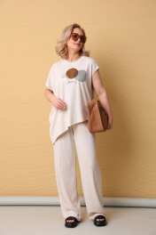 Летний костюм из трикотажа и вискозы с оригинальной аппликацией LM К7848