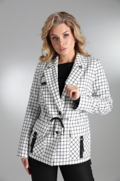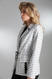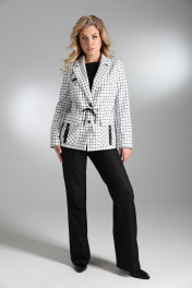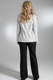 Комплект 2-ка, состоящий из жакет и брюк. Однобортный жакет на подкладке, принт клетка. Силуэт прямой, с застёжкой на две петли и пуговицы. По талии расположена кулиса и шнурок для приталивания жакета. По переду расположены накладные карманы с клапаном и декором. Классические брюки из плотной ткани. Пояс на высокой посадке. На передних половинках расположены под наклоном нефункциональные прорезные карманы в рамку. На задних половинках расположены вытачки. Пояс со шлевками. Застежка брюк – гульфик на молнии, по поясу крючок и петля. Фурнитура и материалы отделки могут незначительно отличаться от тех, что на фотографии Рост фотомодели 169 см. Размер у фотомодели – 44.