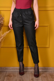 Брюки женские из костюмной вискозной ткани. Ткань мягкая шелковистая. Брюки свободного прилегания по бедрам и зауженные к низу. Пояс на эластичной тесьме с кулисой и втянутым шнурком. Вход в карман фигурный, наклонный к боковому шву. Длина 95,5-97,5 см. Замеры: Рост фотомодели 166 см. Размер у фотомодели – 42.