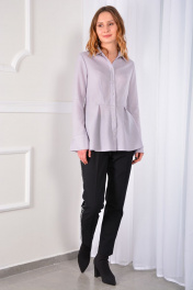 Ирина, Минск18 января 2020На свой промежуточный 46/48 с большой разницей между грудью и талией заказала 46 размер, так как побоялась, что в талии будет топорщиться. В груди получилось внатяжку, в талии и по бёдрам села хорошо. В комплекте есть запасная пуговичка, поставлю дополнительно на уровне груди. Ткань не светится, оттенок непонятный: вроде есть сиреневый отлив, но, всё-таки, я бы скорее его к серому отнесла (сиреневый не такой явный, как на фото). Лично мне к лицу, цвет спокойный. Шерсть ощущается. Для меня непривычная ткань, раньше шерстяные блузы не носила. Фасон очень нравится. Надеюсь, производитель отошьёт ещё что-нибудь такого плана, но из смесовых тканей и в других цветах. В целом, блузка выглядит нежно.