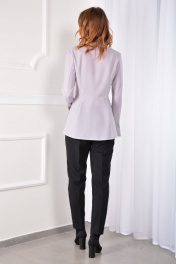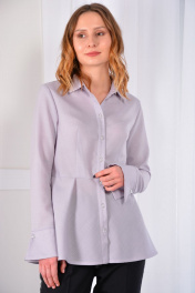 Блуза из тончайшей шерсти с баской, которая способна визуально уменьшить и подчеркнуть вашу талию. Данная модель обладает уникальной способностью подчеркивать линию талии таким образом, чтобы создавался эффект идеальной фигуры в форме песочных часов. Блуза с отложным воротником и притачной планкой на петли и пуговицы. Рукав втачной двухшовный с притачной манжетой и застежкой на петли и пуговицы типа «запонки».