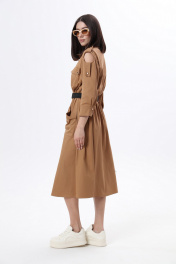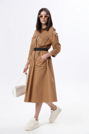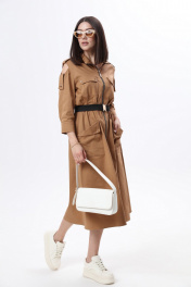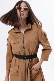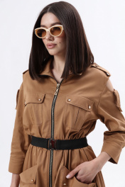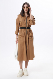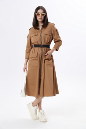 Длинное платье в стиле сафари с накладными карманами и съемным поясом LM М38 беж