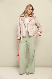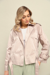 Лёгкая куртка-тренч свободного объёма прямого силуэта с застёжкой на пуговицы. Пояс съемный, продевающийся через шлевки.