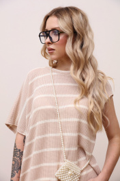 Бежевый костюм из текстиля с широкими брюками и джемпером LM ТР1750