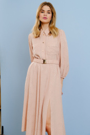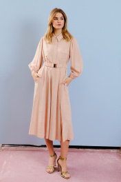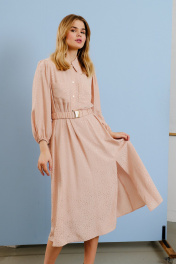 Платье миди с карманами и регулируемой талией из текстиля Lokka 1597 розовый
