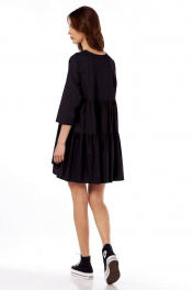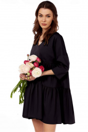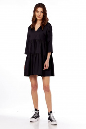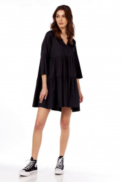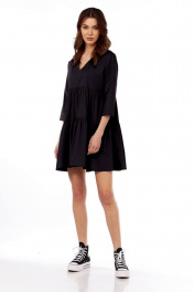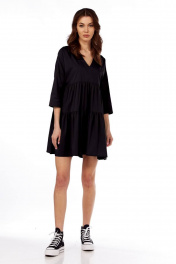 Платье свободного кроя с V-вырезом и сборкой на лето Fita 1365 черный