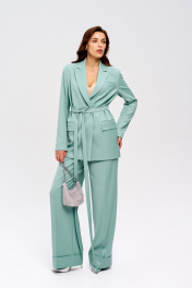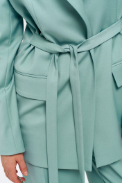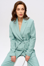 Жакет свободного кроя, полуприлегающего силуэта на завязках, длиной ниже линии бедер. Интересная модель подойдёт для элегантных женственных образов. Выполнен из тактильно приятной ткани на основе вискозы. - Жакет с отложным воротником - Свободный крой - Карманы с клапаном - Без застежек - Силуэт формируется завязками - Подплечники - Изделие на подкладке - Втачной рукав Сочетайте жакет с брюками из нашей коллекции. Длина жакета по спинке 78 см, длина рукавов около 64 см. На модели жакет размера 44 Параметры модели: 89х64х95 см Рост модели 176 см