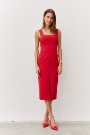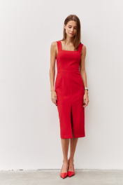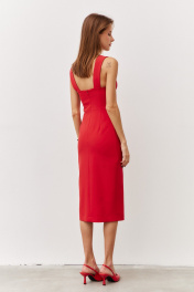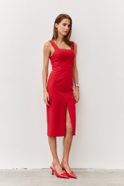 Миди платье с разрезом и глубоким вырезом из крепа Luitui R1055 красный
