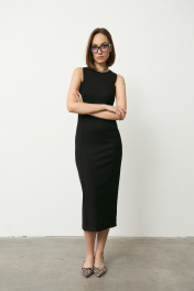 Миди платье прилегающего силуэта из гладкой костюмной ткани Luitui R1077 черный
