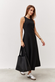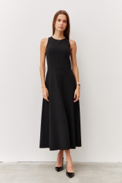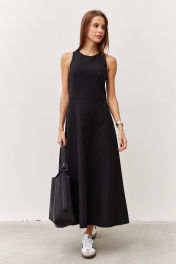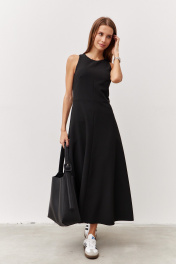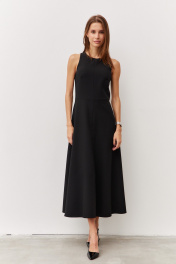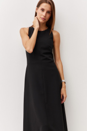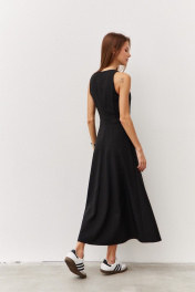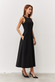 Черное платье с карманами и вырезом из текстиля Luitui R1092 черный
