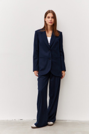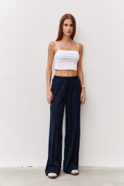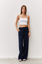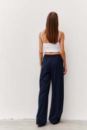 Брюки широкого силуэта из гладкой костюмной ткани Luitui R2019 темно-синий