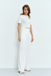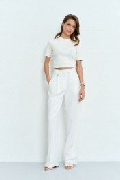 Прямые брюки с посадкой на талии и складками Luitui R2022 молочный