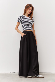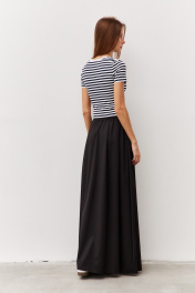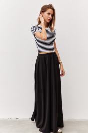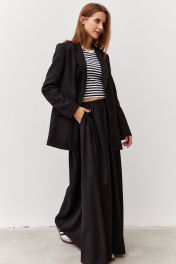 Юбка макси из гладкой костюмной ткани с глубокими складками по переду и спинке. Пояс на резинке, в боковых швах обработаны наклонные карманы. Изделие без подкладки. Длина изделия 102 см.