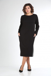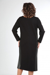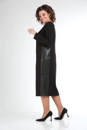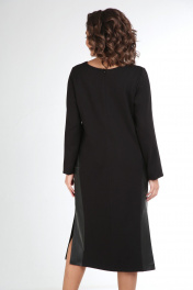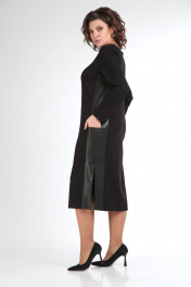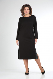Классическое черное платье прямого силуэта с разрезами в боковых швах. Потайная молния по спинке. Боковые детали выполнены из экокожи с накладными карманами. Подойдет как для офиса, так и для повседневнной носки, вечерних выходов. Длина изделия- 115 см