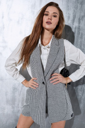 Демисезонный жилет свободного кроя из вязаного тканя Luna 015/1 гусиная_лапка