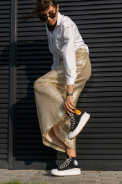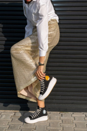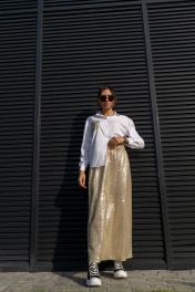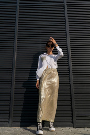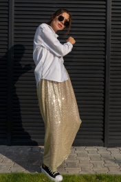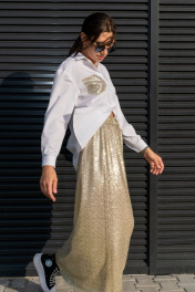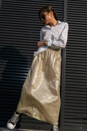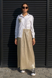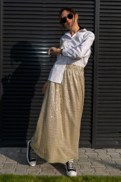 Юбка трапеция с пайетками на резинке длиной 100 см Luna 126 золото