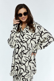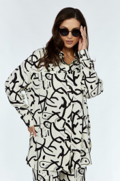 Белая рубашка прямого кроя с карманами и разрезами Luna 170_1 молоко-рисунок