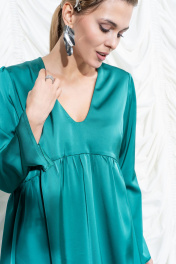 Платье актуального кроя А-силуэта с фигурным вырезом горловины.Рукав втачнойсо сборкой сверху,разрезом в шве в нижней части. длина - 88см