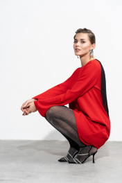 Платье с фигурным вырезом и рюшей на спине Luna 206 красный