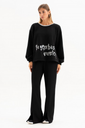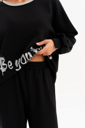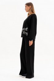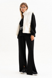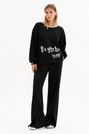 Спортивный костюм свободного кроя подходит для активных женщин и девушек,стремящихся к комфорту в повседневной жизни.Свитшот прямого силуэта с печатью по переду,рукава с двойной манжетой.Широкие прямые брюки на резинке по талии,разрезами по центру ноги,карманы в боковых швах.Костюм отлично комбинируется с жилетом М-228. длина свитшота -62 см, длина рукава-64 см 44 46 48 50 СВИТШОТ Ширина по линии груди, см. 57 59 61 63 Ширина по линии талии, см. 56 58 60 62 Ширина по линии бедер,см 57 59 61 63 Длина изделия, см. (по спинке) 62 62 62 62 Длина рукава от точки плеча см. 64 64 64 64 Ширина рукава, см. 19.5 21.5 23.5 25.5 44 46 48 50 БРЮКИ Ширина по линии талии, см. 35 37 39 41 Ширина по линии бедер, см. 56 58 60 62 Длина изделия, см.(сбоку) 110 110 110 110