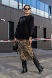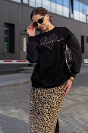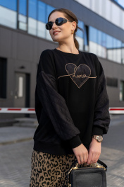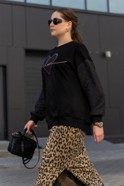 Свитшот из футерованного трикотажа с вышивкой и овальным вырезом Luna 191 чёрный