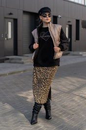 Свитшот прямого силуэта из плотного футерованного трикотажа с округлым вырезом горловины,рукавами из отделочной ткани на манжете,по переду-вышивка.
